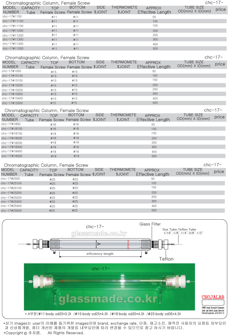 chromatographic column, general glass apparatus(일반초자기구), columns(컬럼), chromatographic column(chc-17)