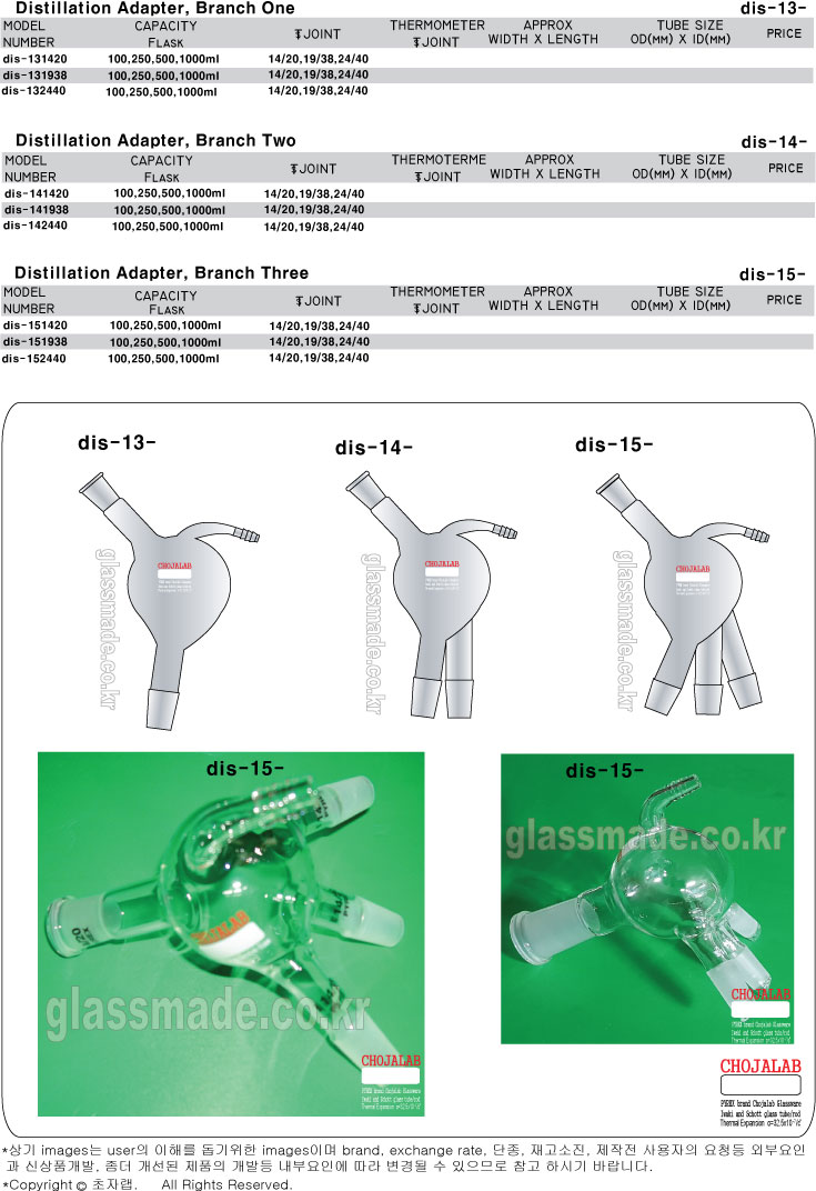 distillation apparatus, general glass apparatus(일반초자기구), apparatus related distillation/dis-13~dis-15, distillation apparatus(증류수장치)