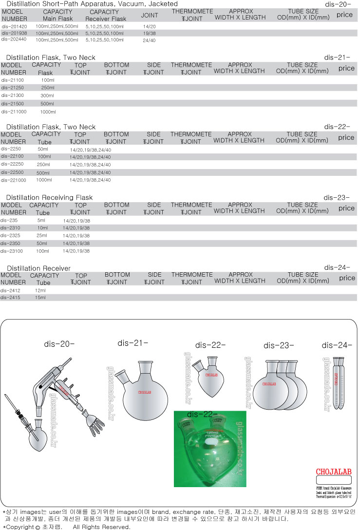 distillation apparatus, general glass apparatus(일반초자기구), apparatus related distillation/dis-20~dis-24, distillation apparatus(증류수장치)