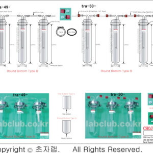 Trap, Vacuum Trap, Reactor Type Vacuum Trap, with Glass Hose Nipple or GL Screw Connector, tra-49, tra-50, 반응조식진공트랩, 반응조식트랩, 분리형진공트랩, 분리형트랩, 트랩, 진공트랩, 버블러, 임핀져, 임핀저