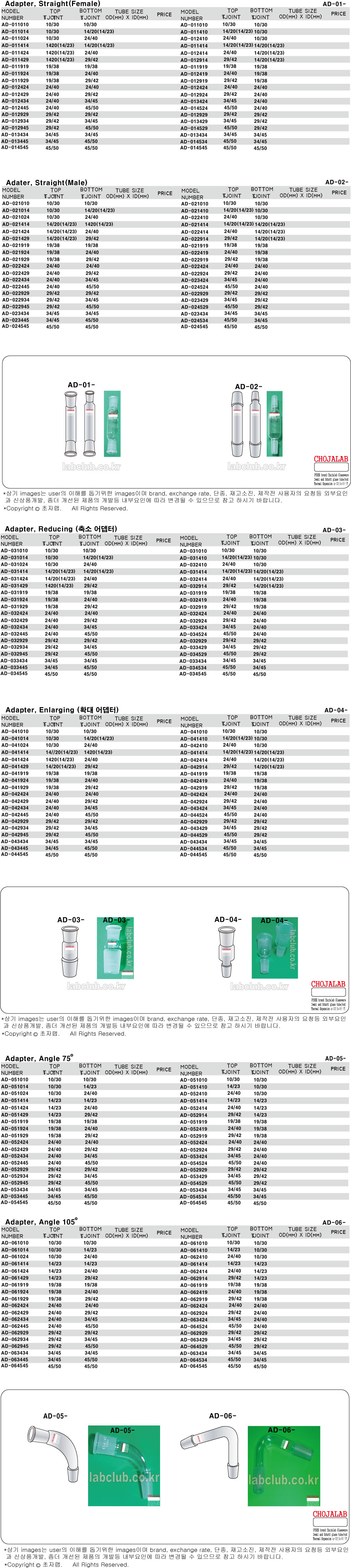 Adapter, Straight Adapter, Reducing Adapter, Enlarging Adapter, Adapter 75, Adapter 105, AD-01, AD-02, AD-03, AD-04, AD-05, AD-06, 어뎁터, 아답타, 직선어뎁터, 축소어뎁터, 확대어뎁터, 75도어뎁터, 105도어뎁터