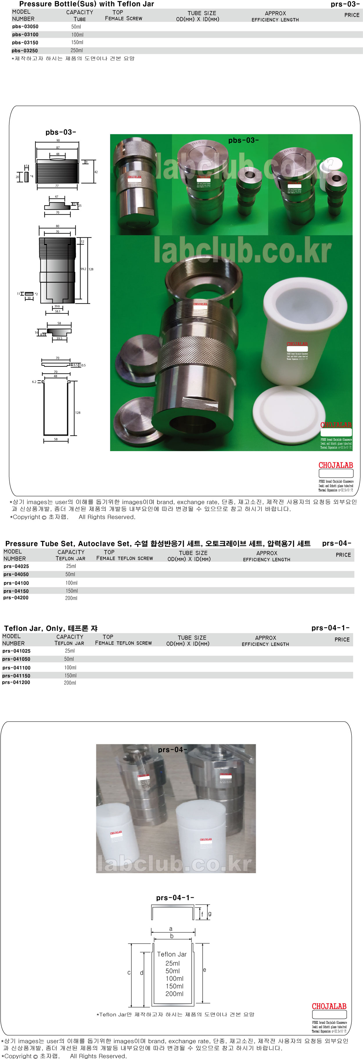 Autoclave Bottle, Pressure Bottle, Stainless and Teflon, prs-03, prs-04, prs-04-1, 오토크레이브보틀, 오토크레이브반응기, 오토크레이브반응조, 수혈반응기, 압력반응기