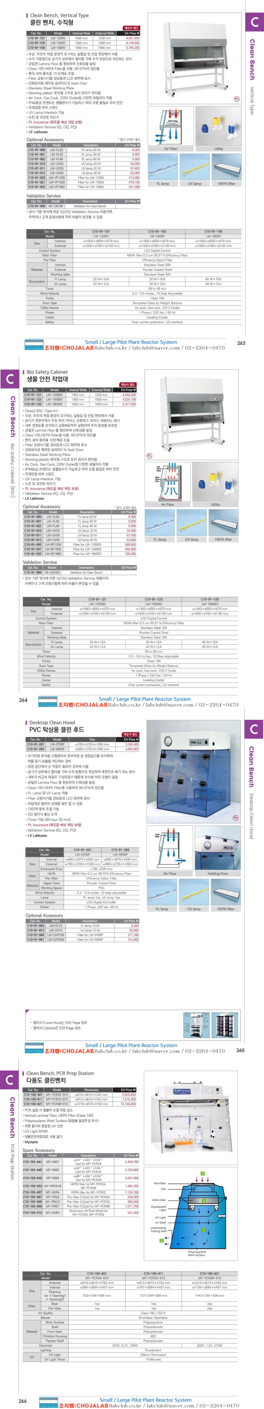 C10-91, C10-193, 263, 264, 265, 266, Clean Bench, Vertical Type Clean Bench, Bio Safety Cabinet, Desktop Clean Hood, PCR Prep Station, 클린 벤치, 클린벤치, 작업대, 클린 후드, 수직형 클린 벤치, 생물 안전 작업대, PVC 탁상용 클린 후드, 다용도 클린벤치