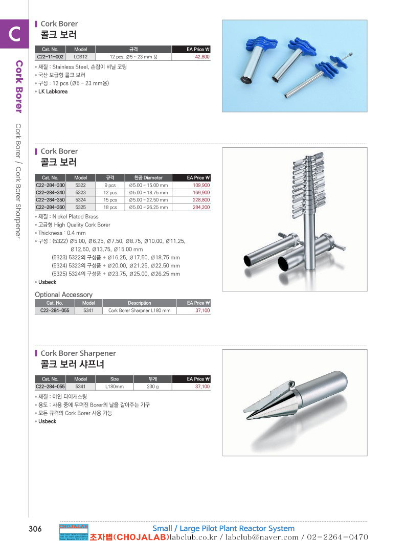 C22-11, C22-284, 306, Cork Borer, Cork Borer Shapener, 콜크 보러, 콜크 보러 샤프너, 콜크보러, 보러