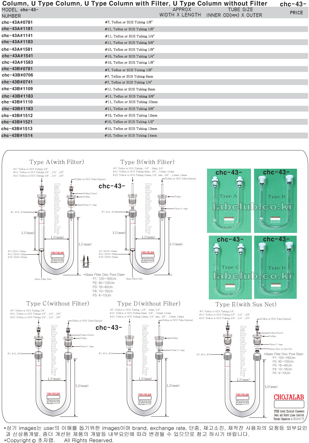 Chromatographic Column, Column, U Type Column, U Type Column with Filter, U Type Column without Filter, U Type Adapter, chc-43, 컬럼, 칼람, 유타입컬럼, 유타입칼람, 유타입어뎁터, U타입컬럼, U타입칼람, U타입어뎁터, 크로마토래피컬럼, 유타입크로마토래피컬럼, U타입크로마토래피컬럼, 크로마토래피칼람
