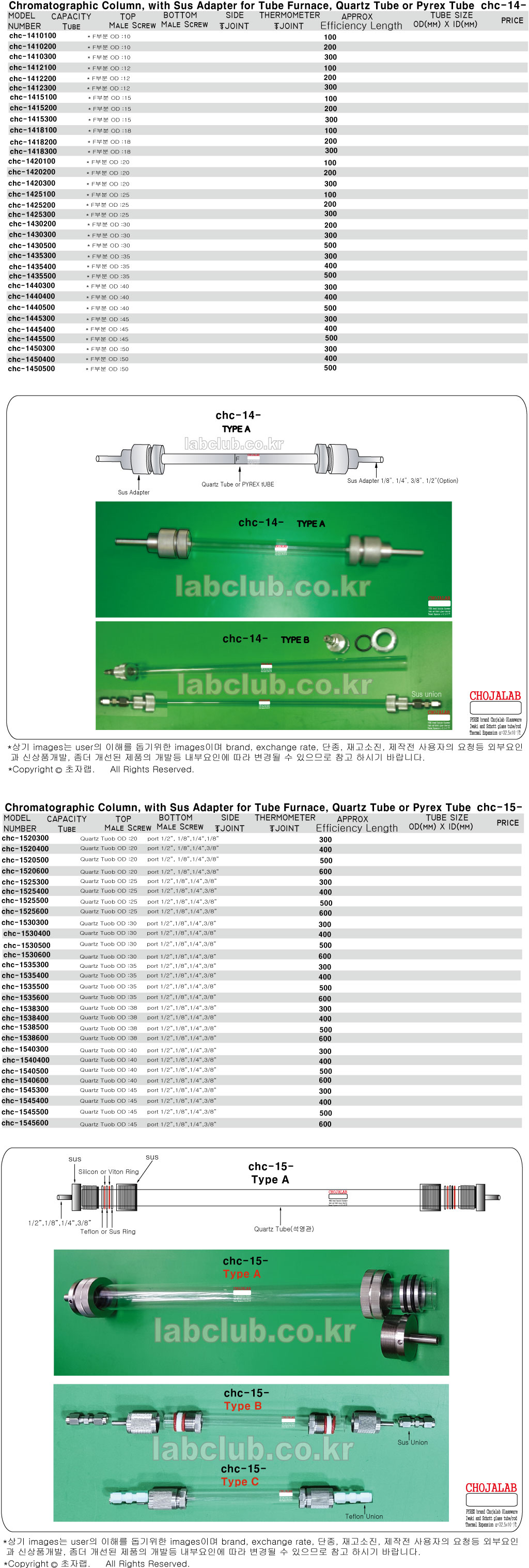 Column, Chromatographic Column, Quartz Chromatographic Column, Chromatographic Quartz Column,Quartz Tube for Furnace, with Sus Adapter for Tube Furnace, Quartz Tube or Pyrex Tube, with Sus Adapter for Tube Furnace, Quartz Tube or Pyrex Tube, A, B or C Type, chc-14, chc-15, 크로마토그래피컬럼, 퍼네스용컬럼, 튜브로용컬럼, 전기로용컬럼, 쿼츠크로마토그래피컬럼, 크로마토래피 컬럼, 컬럼, 칼람