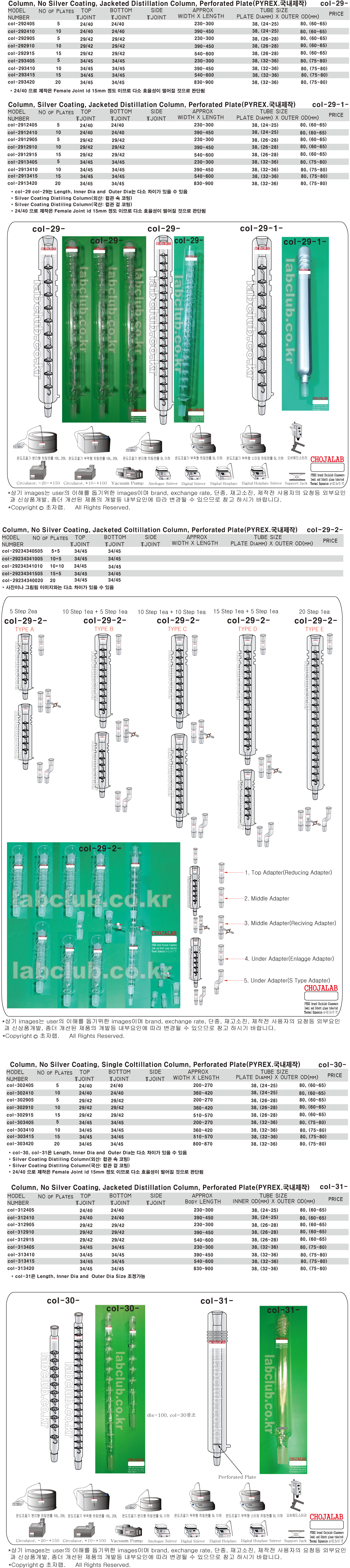 Column, Distilling Column, Distillation Column, Column with No Silver Coating, Jacketed Distillation Column with Perforated Plate, Single Distillation Column with Perforated Plate, Distillation Apparatus, Silver Coated Distillation Jacketed Column with Perforated Plate Sets, Silver Coated Distillation Single Column with Vigreux Sets, col-29, col-29-1, col-29-2, col-30, col-31, 증류컬럼, 증류컬람, 컬럼디스틸링컬럼, 디스틸레이션컬럼, 크로마토그래피컬럼, 컬럼, 칼람