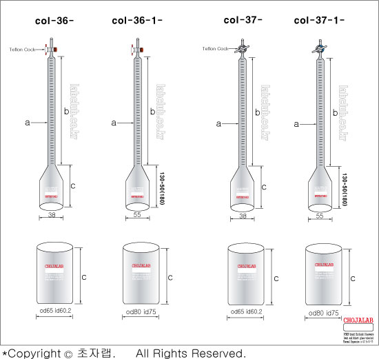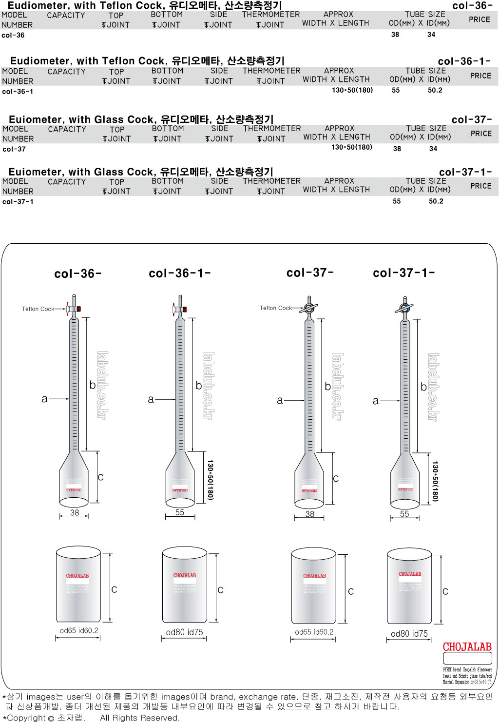 Column, Eudiometer, with Teflon Cock or Glass Cock, col-36, col-36-1, col-37, col-37-1, 유디오메타, 산소량측정기, 컬럼, 칼람, 이디오메타