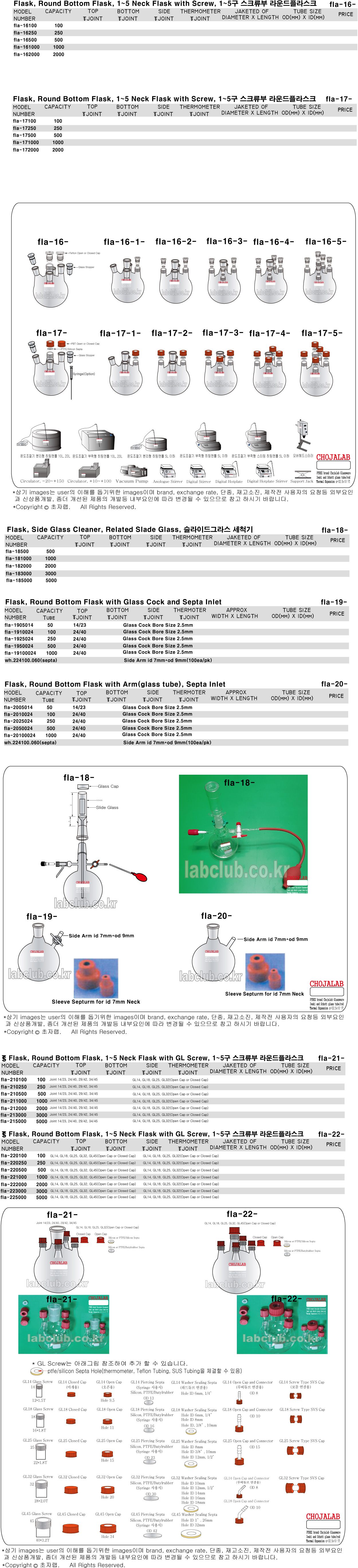 Flask, Round Bottom Flask, 1~5 Neck Flask with Screw, Side Glass Cleaner, Related Slade Glass, Round Bottom Flask with Glass Cock and Septa Inlet, Round Bottom Flask with Arm, Round Bottom Flask, 1~5 Neck Flask with GL Screw, fla-16, fla-17, fla-18, fla-18-1, fla-19, fla-20, fla-21, fla-22, 라운드플라스크, 플라스크, 플라스크, 슬라이드그라스세척기,1~5구 라운드플라스크, 1~5구 스크류부 라운드플라스크, 라운드프라스크, 프라스크, 프라스크, 1~5구스크류부플라스크, 1~5구스크류부프라스크, 슬라이드 그라스 세척기, 슬라이드 그라스 클리너