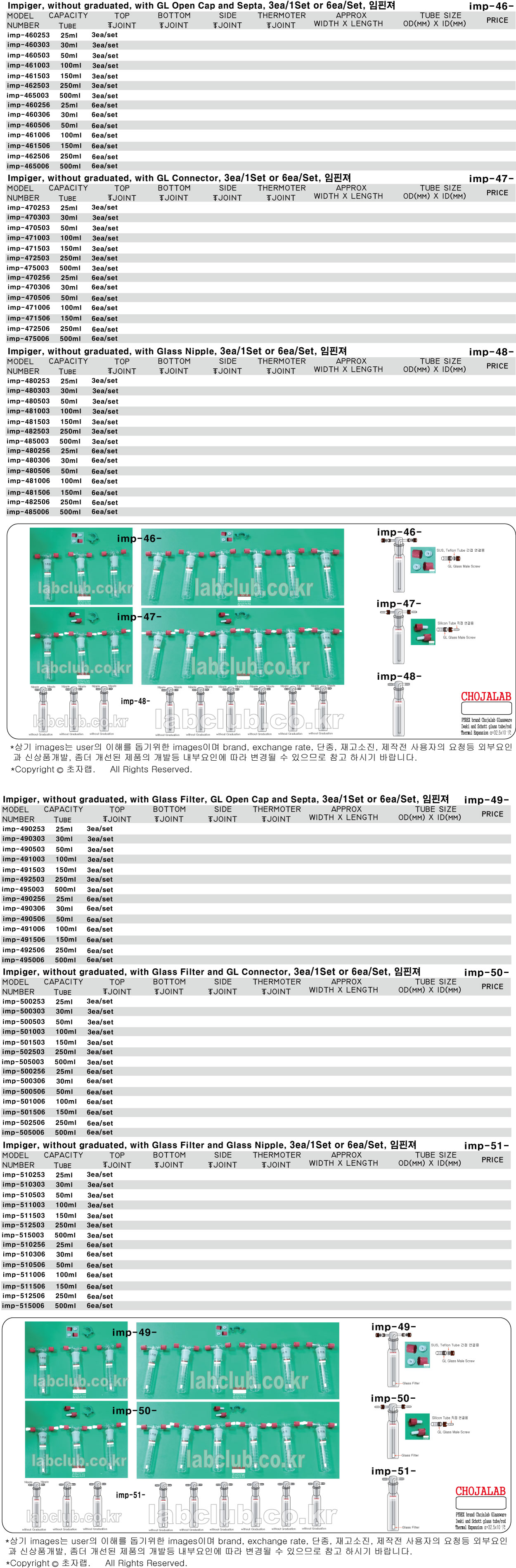 Impinger, without graduated, with GL Open Cap and Septa, 3ea/1Set or 6ea/Set, with GL Connector, with Glass Nipple, with Glass Filter, with Glass Filter, imp-46, imp-47, imp-48, imp-49, imp-50, imp-51, 임핀져, 임핀저, 인핀저, 인핀져