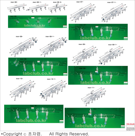 Manifold, Single Mani-fold, Double Mani-fold, Vacuum Line, Schlenk Line, with Glass Cock, man-06, man-06-1,man-06-2, man-07, man-07-1, man-08, man-08-1, man-09, man-09-1, man-10, man-10-1, man-11, 그라스콕크 진공라인, 진공라인, 베큠라인, 쉬링크라인
