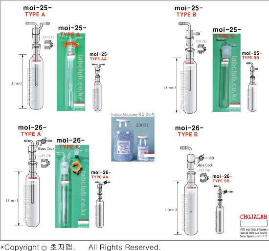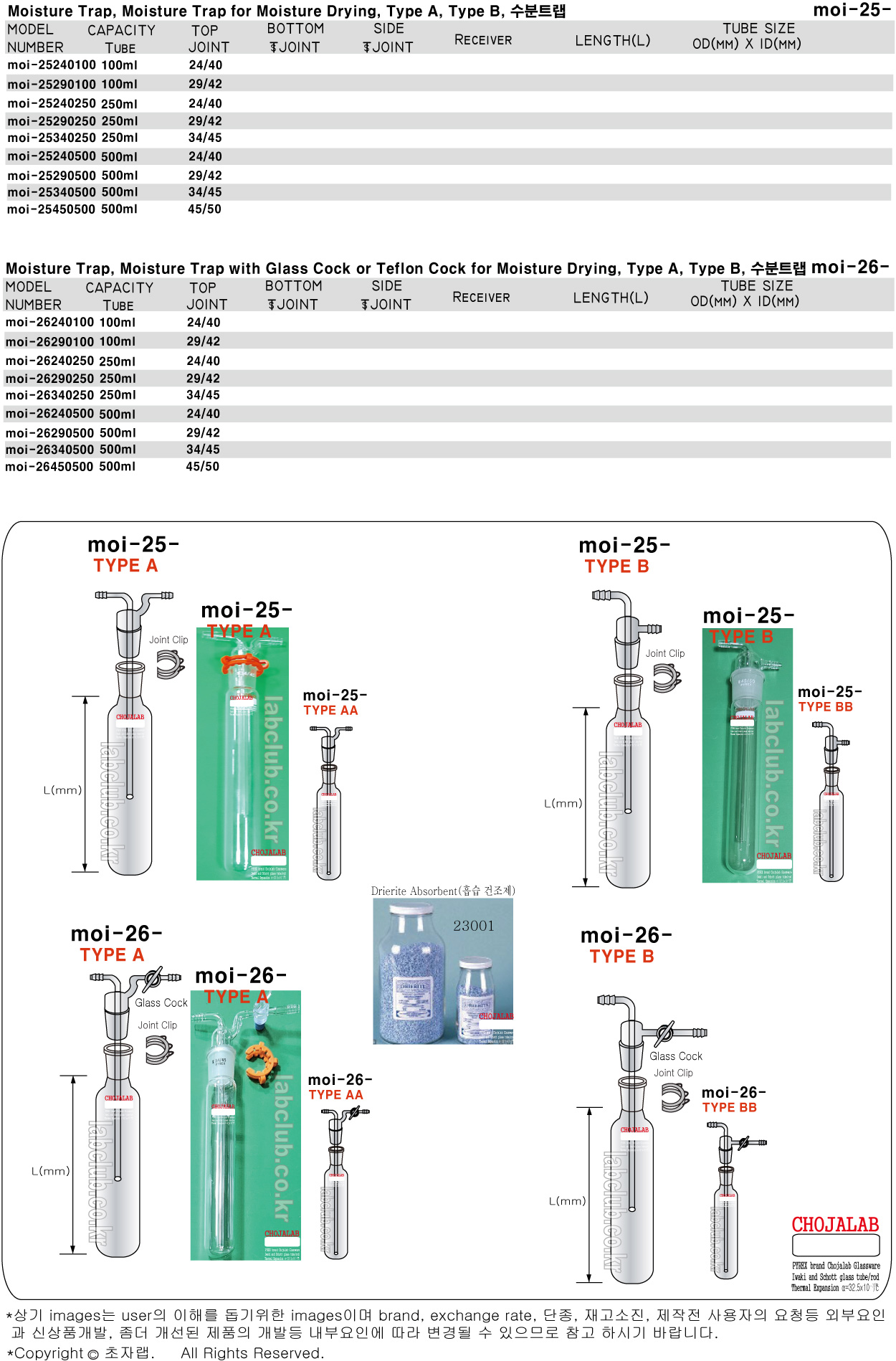 Moisture Trap, Moisture Trap for Moisture Drying, Moisture Trap with Glass Cock or Teflon Cock for Moisture Drying, Type A, Type B, moi-25, moi-26, 수분트랩, 수분수기