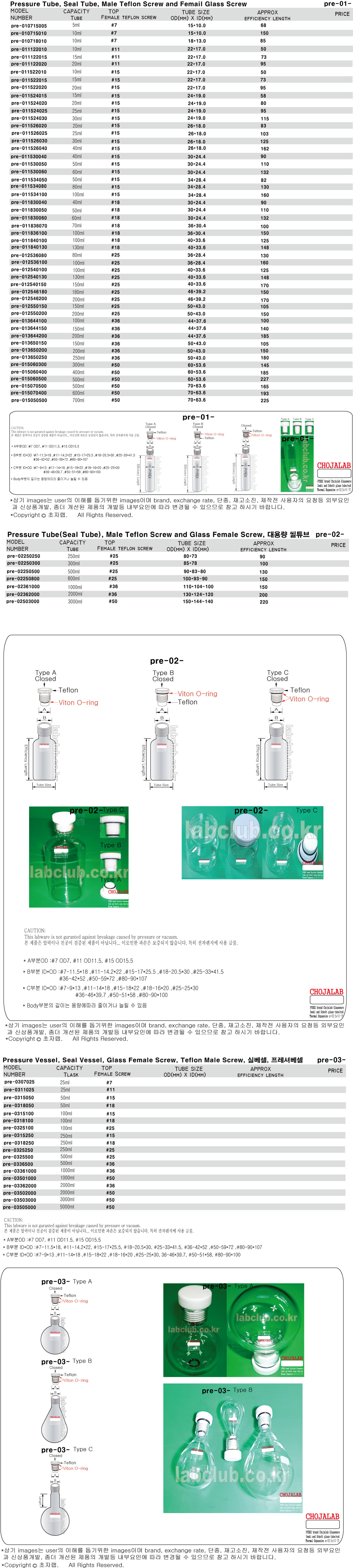 Pressure Tube, Seal Tube, Pressure Vessel, Pressure Tube, Male Teflon Screw and Femail Glass Screw, pre-01, pre-02, pre-03, 압력병, 실튜브, 씰링튜브, 프레셔튜브, 압력튜브, 압력용기, 소용량실튜브, 소용량씰튜브, 소용량씰링튜브, 소용량압력병, 대용량실튜브, 대용량씰튜브, 대용량씰링튜브, 대용량압력병