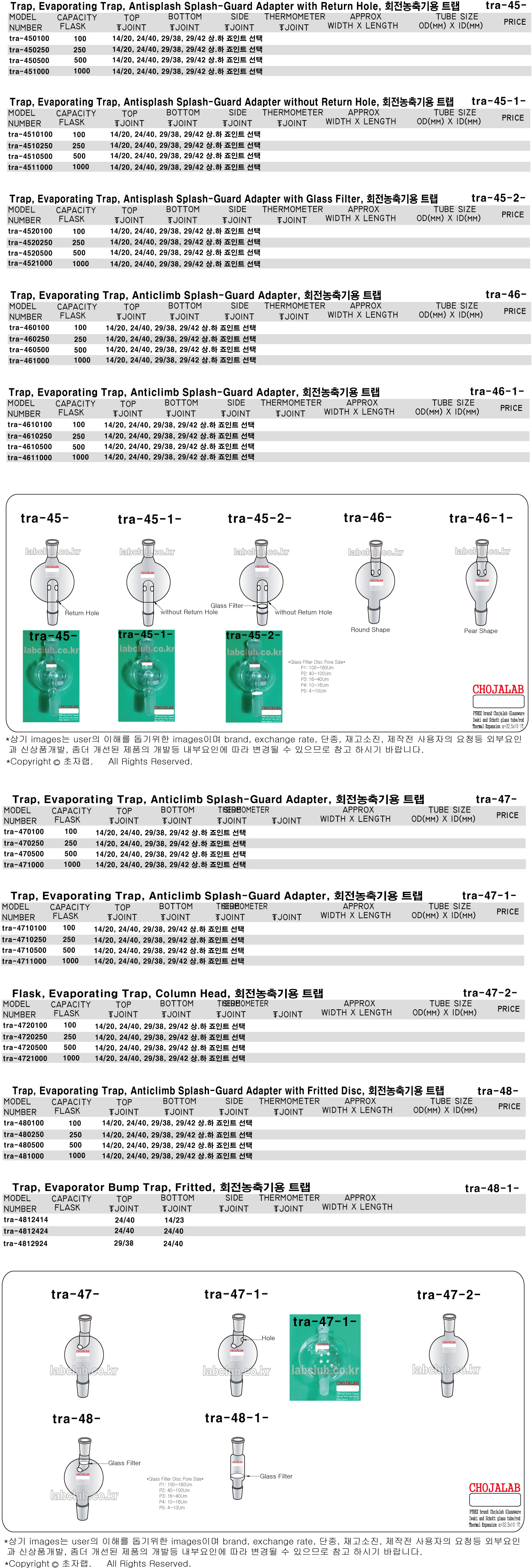 Trap, Evaporating Trap, Antisplash Splash-Guard Adapter, Evaporator Bump Trap, Fritted, tra-45, tra-45-1, tra-45-2, tra-46, tra-46-1, tra-47, tra-47-1, tra-47-2, tra-48 ,tra-48-1, 트랩, 회전농축기용트랩, 회전농축기트랩, 이베포레이터트랩, 에바프레터트랩, 도람푸, 도람프