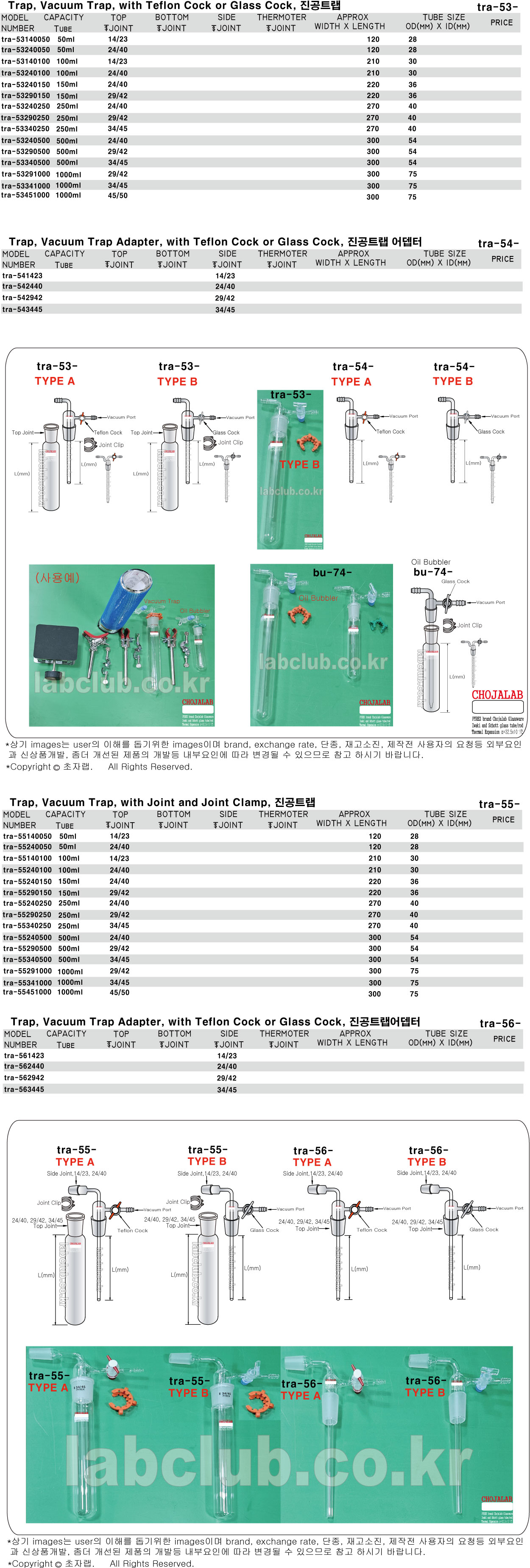 Trap, Vacuum Trap, with Joint and Joint Clamp, Vacuum Trap Adapter, with Teflon Cock or Glass Cock, tra-53, tra-54, tra-55, tra-56, 트랩, 진공트랩 , 진공트랩 어뎁터, 진공트랩어뎁터, 베큠트랩, 베큠트랩 어뎁터, 베큠트랩어뎁터, 버큠트랩 어뎁터, 버큠트랩어뎁터