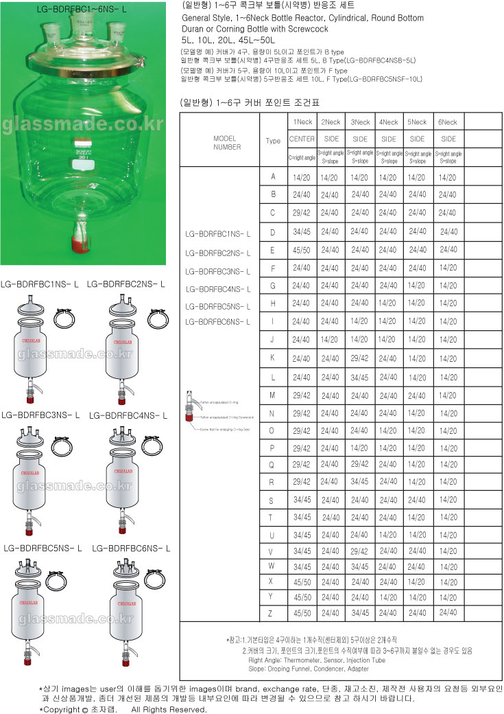 reactor sets, general type 1~6neck reactor Sets(1~6구 일반형 반응조세트), 일반형보틀반응조(시약병)