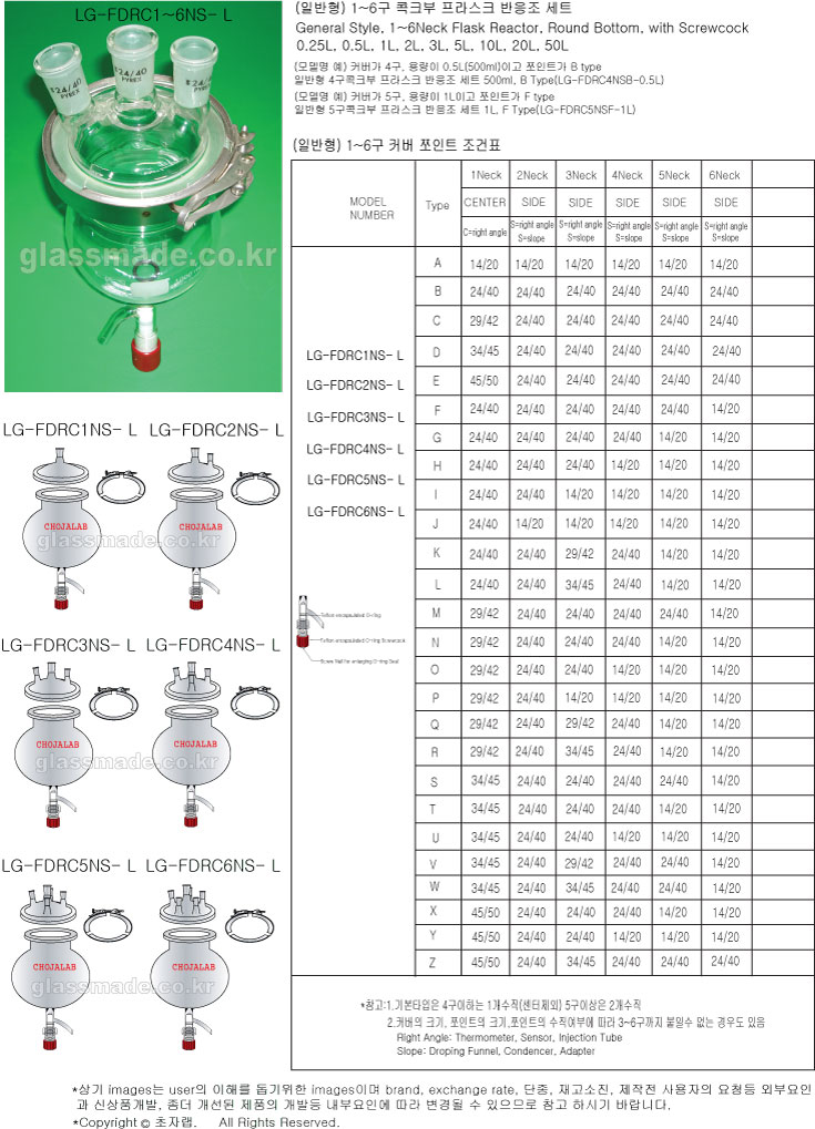 일반형콕크부프라스크반응조, reactor sets, general type 1~6neck reactor Sets(1~6구 일반형 반응조세트)