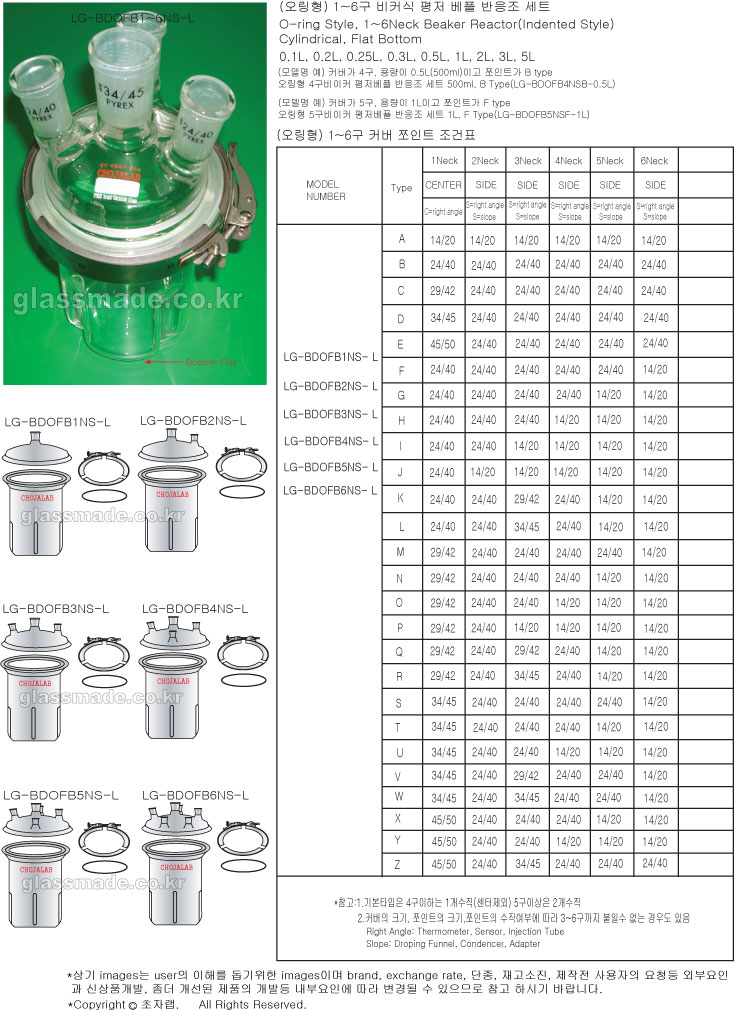 o-ring type 1~6neck reactor Sets(1~6구 오링형 반응조세트), reactor sets, 오링형비커식베플반응조