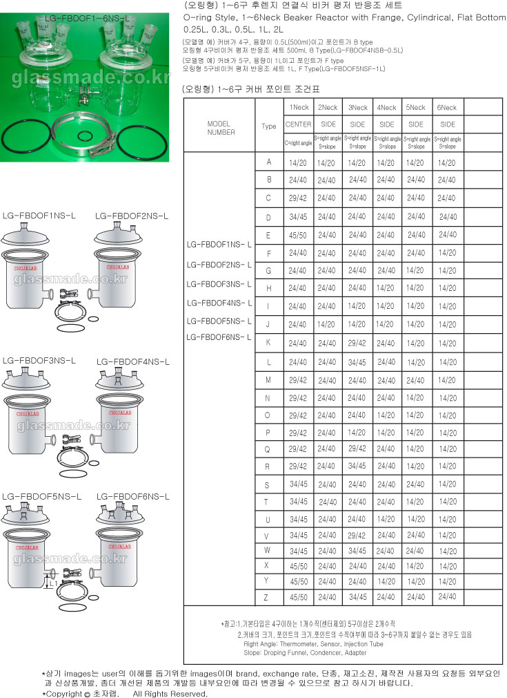 o-ring type 1~6neck reactor Sets(1~6구 오링형 반응조세트), reactor sets, 오링형후렌지연결식비이커반응조세트
